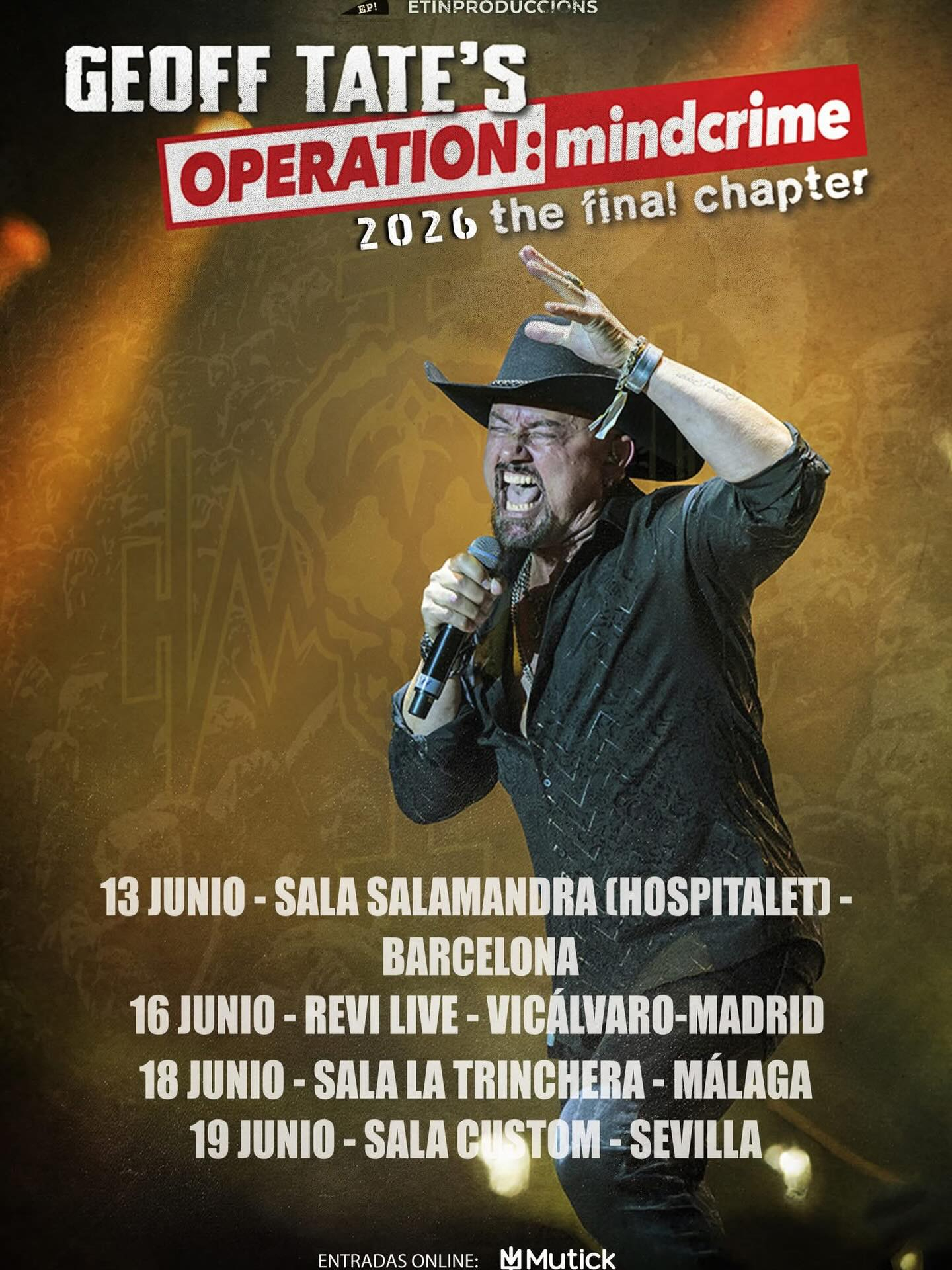Geoff Tate llegará a España en junio de 2026 con una gira de cuatro conciertos: Sobre el escenario, el aclamado ex-vocalista de Queensrÿche interpretará al completo el álbum 'Operation: Mindcrime' de 1988 por última vez