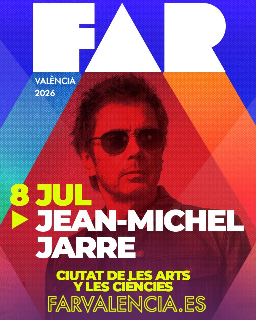 Jean-Michel Jarre, legendario pionero en el arte de combinar la magia de los sintetizadores con el arte multimedia de vanguardia estará en FAR Valencia 2026, próximo 8 de julio