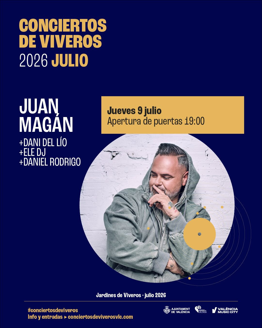 Actuación de Juan Magán en los Conciertos de Viveros de Valencia, será el próximo 9 de julio 2026 a las 19:00h