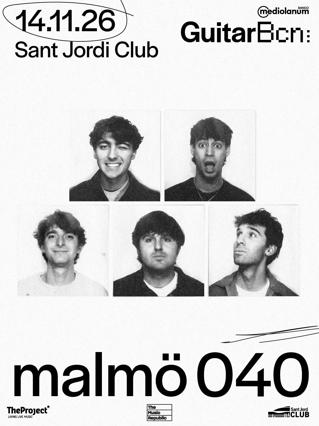 Los barceloneses Malmö 040 llegan el 14 de noviembre de 2026 al Sant Jordi Club de Barcelona, en un concierto que promete una noche cargada de energía y emoción, un evento enmarcado dentro del Banco Mediolanum Guitar BCN